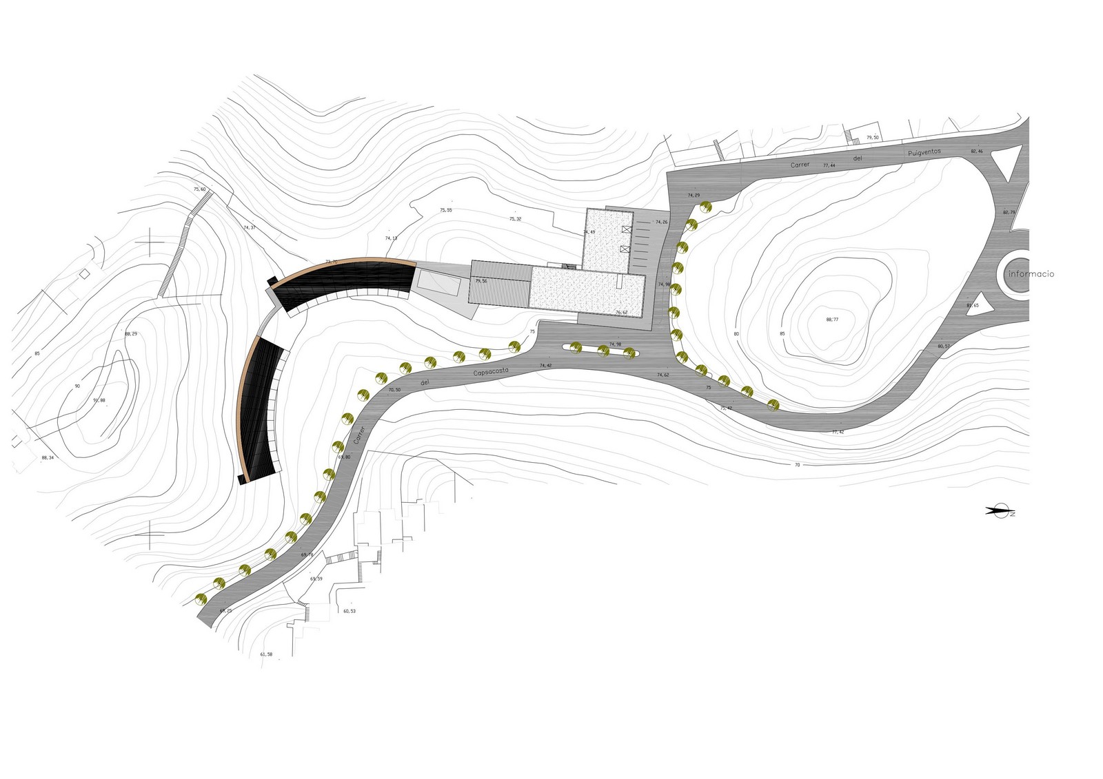 La proposta de Criteria Arquitecthos contemplava una estructura en tres volums, amb l’objectiu de minimitzar l’impacte visual que suposa un edifici d’aquestes característiques. D’aquesta manera, també aconseguia un cert aïllament i tranquil·litat en la zona de repòs.