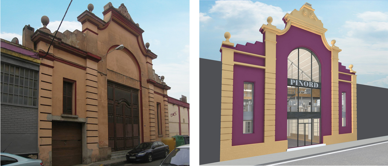 - La façana original i la nova façana Pinord